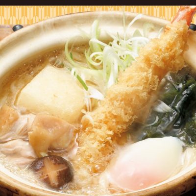 その昔朝廷への献上品でもあった備中(岡山かもがた)の手延べうどんを使用しております。