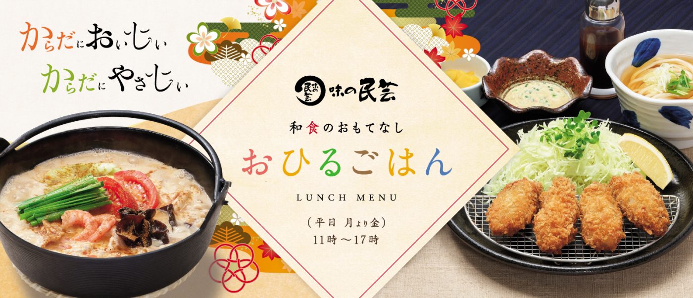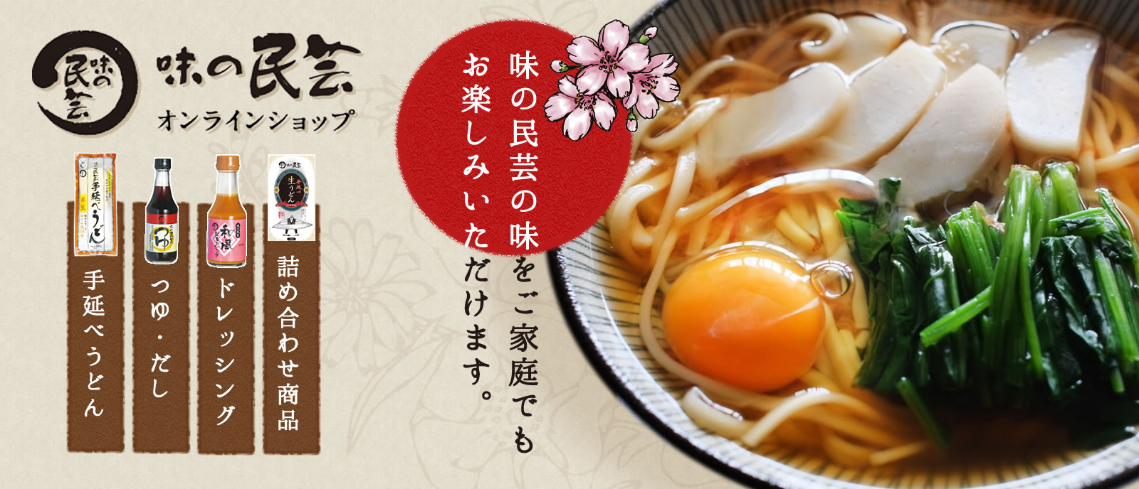 味の民芸は手延べうどんと黄金だしを活かし、うどん、蕎麦、お膳、お重など、バリエーション豊かな手作り料理を提供している和食麺処です。